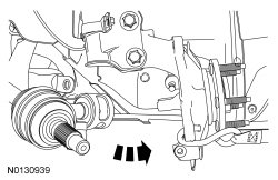 NOTICE: Use care when releasing the lower arm and knuckle into the resting position or damage to the ball joint seal or CV (Constant Velocity) boot may occur.