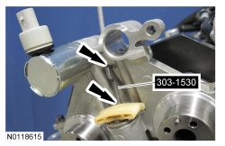 25. Assemble the 2 LH (Left Hand) VCT (Variable Camshaft Timing) assemblies and the LH (Left Hand) secondary timing chain.