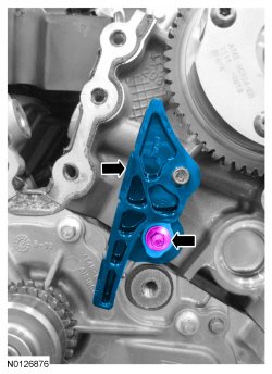 12. Install the LH (Left Hand) secondary timing chain tensioner shoe.