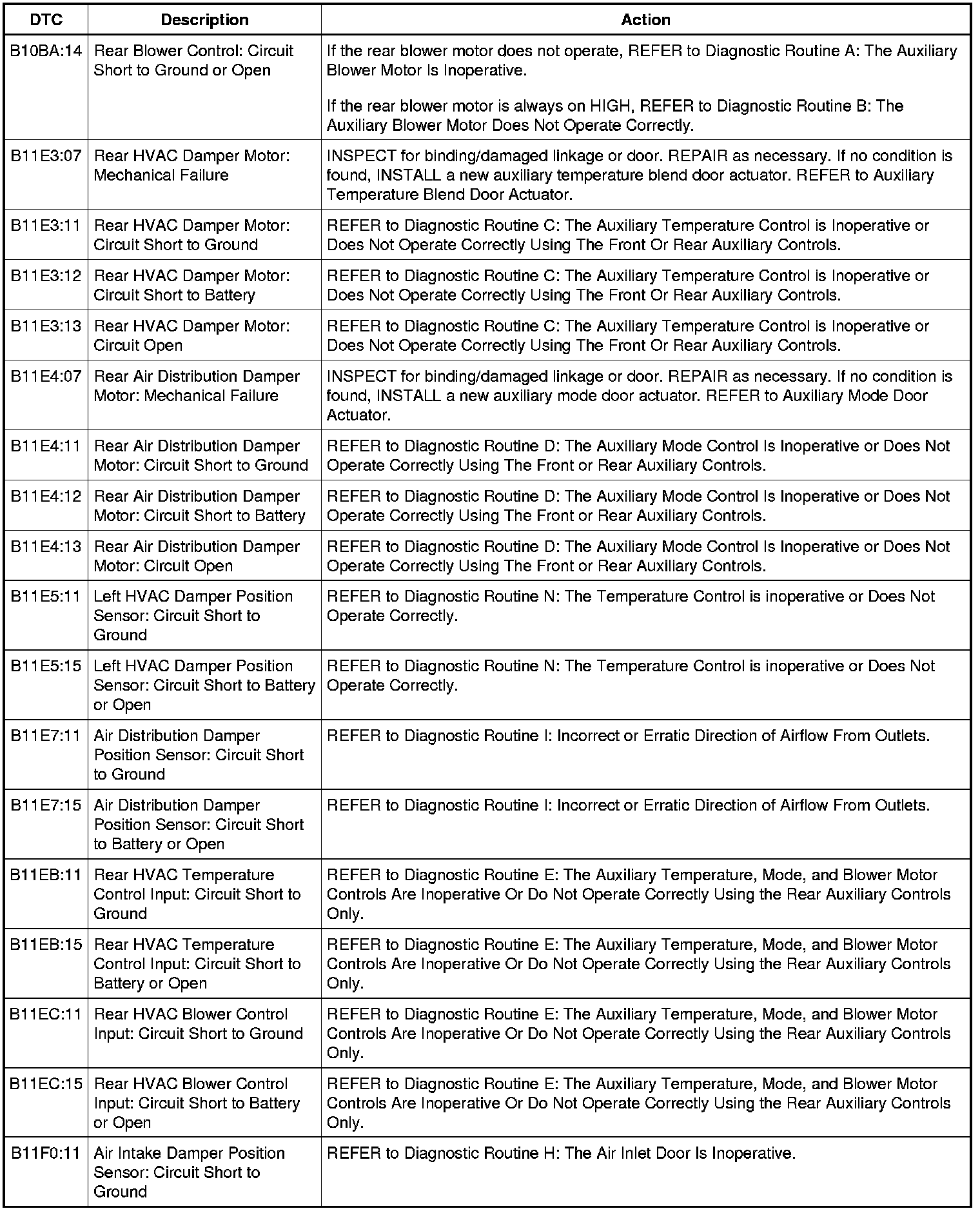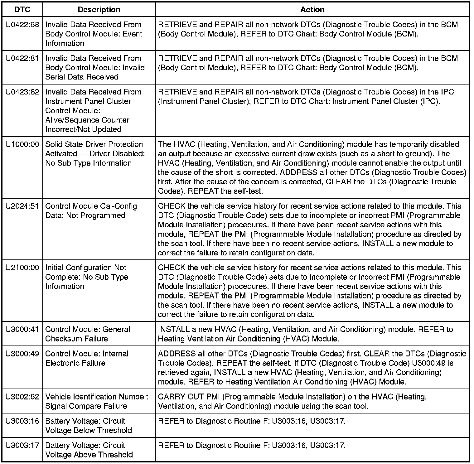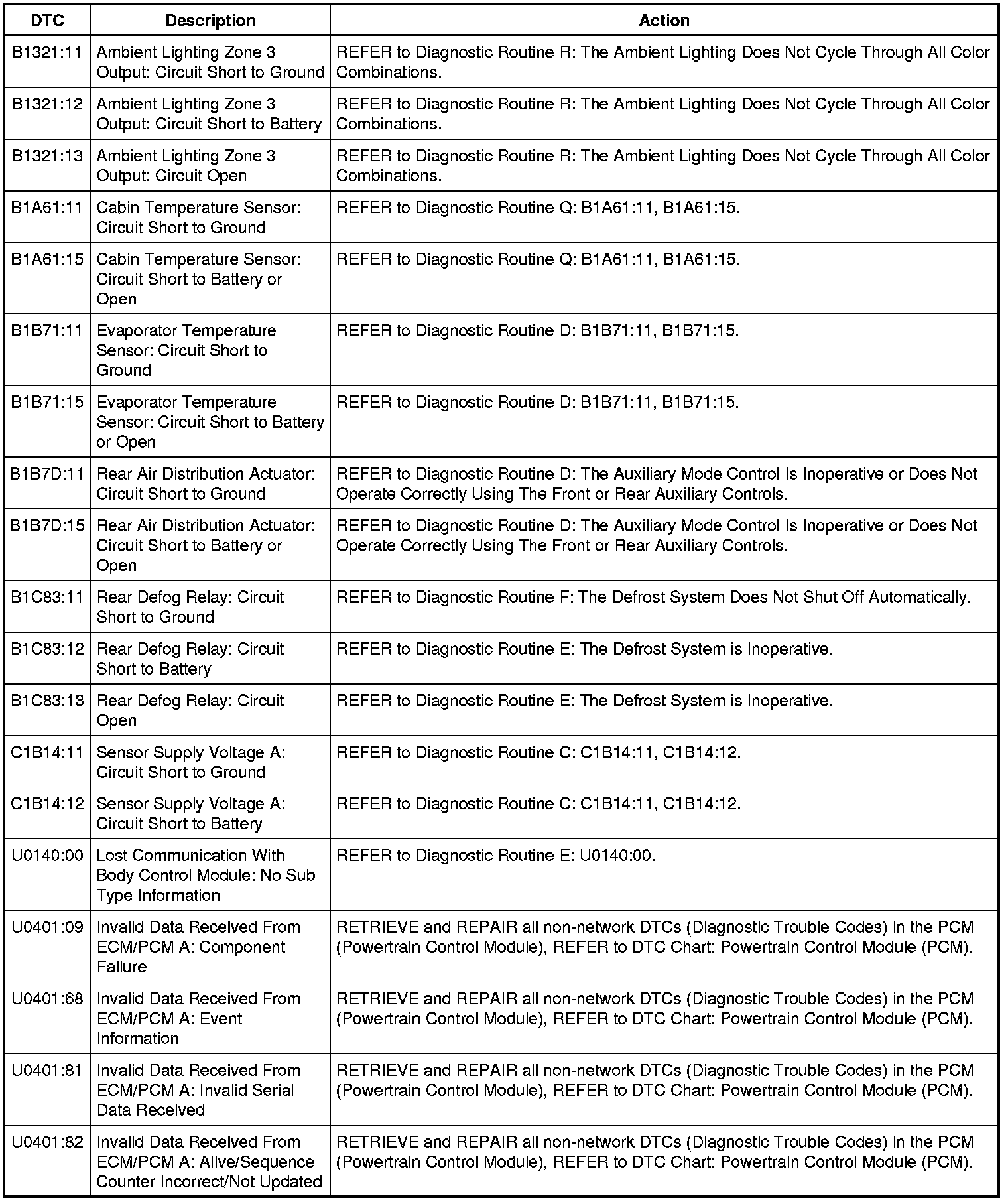 DTC Chart: Heating Ventilation Air Conditioning (HVAC) Module - Electronic Manual Temperature Control (EMTC)
