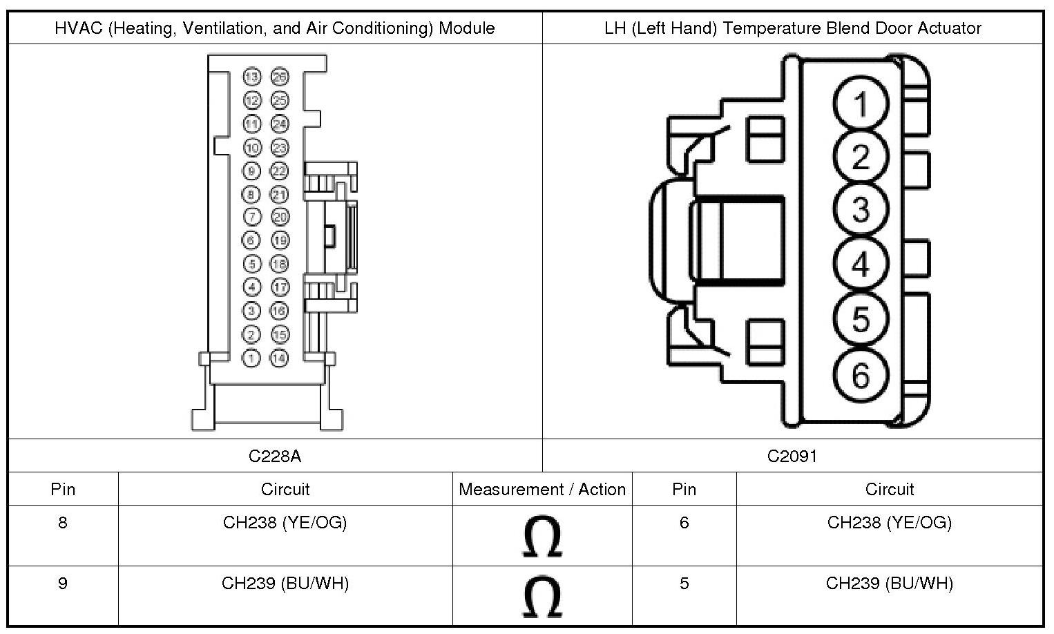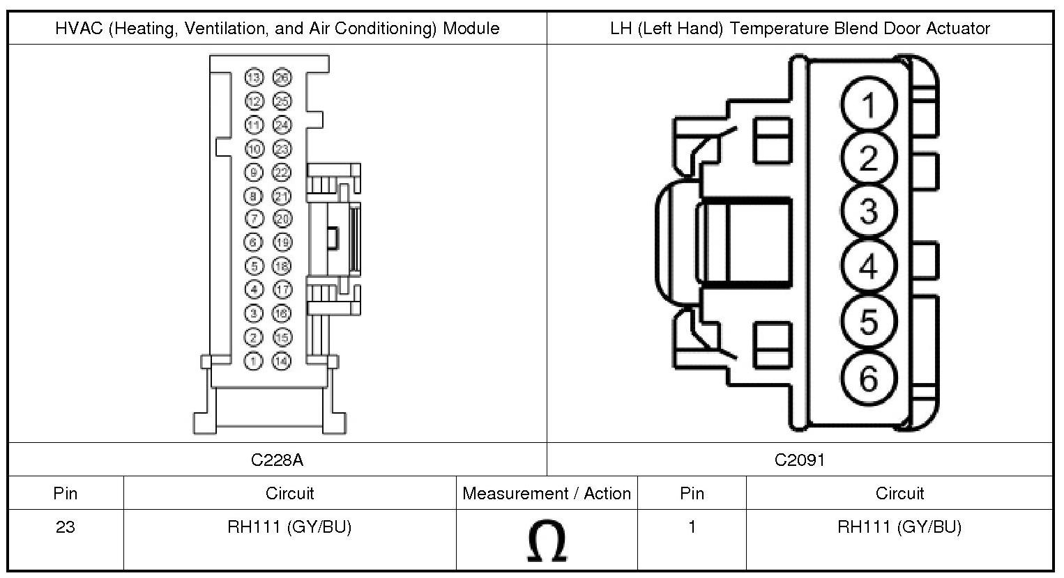 12. CHECK THE LH (Left Hand) TEMPERATURE BLEND DOOR ACTUATOR FEEDBACK CIRCUIT FOR AN OPEN