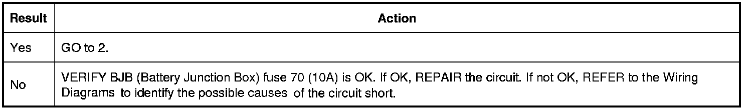 - Inspect BJB (Battery Junction Box) fuse 70 (10A).