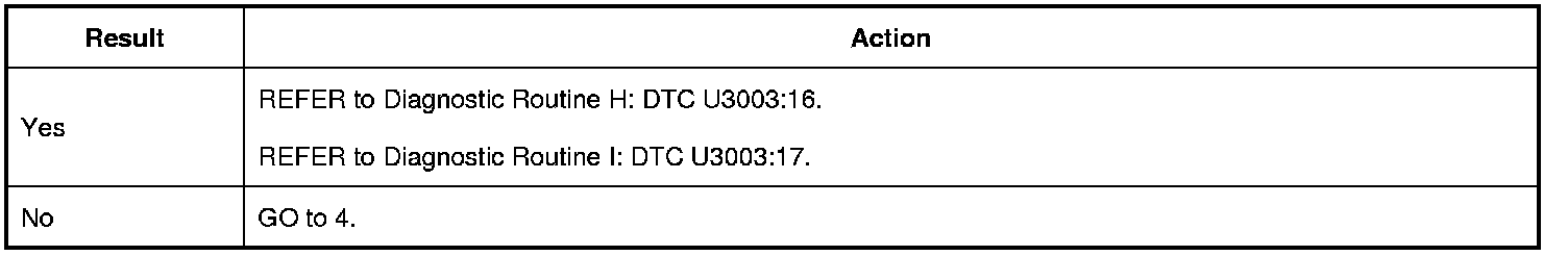 Is DTC (Diagnostic Trouble Code) U3003:16 or DTC (Diagnostic Trouble Code) U3003:17 recorded?