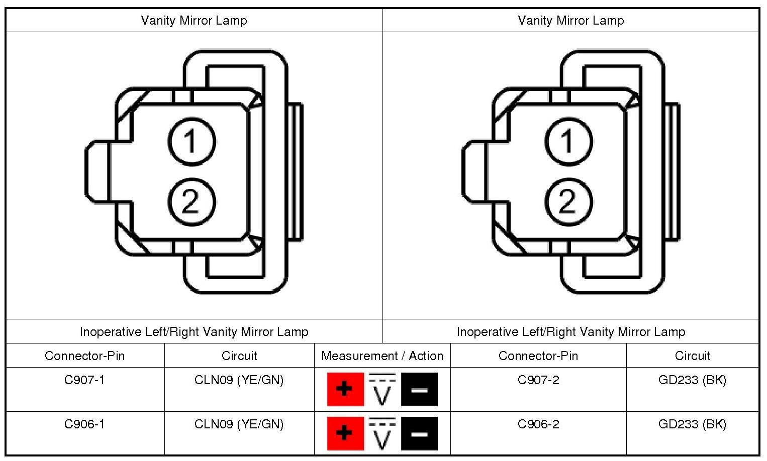 1. Check the operation of all the demand (map and vanity mirror) lamps.