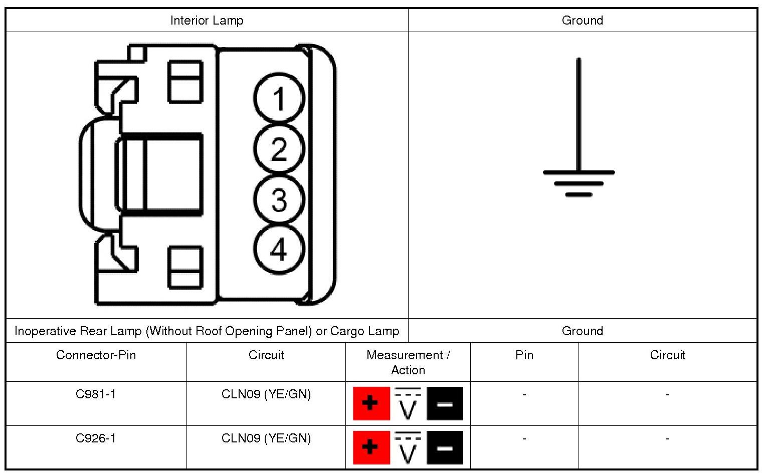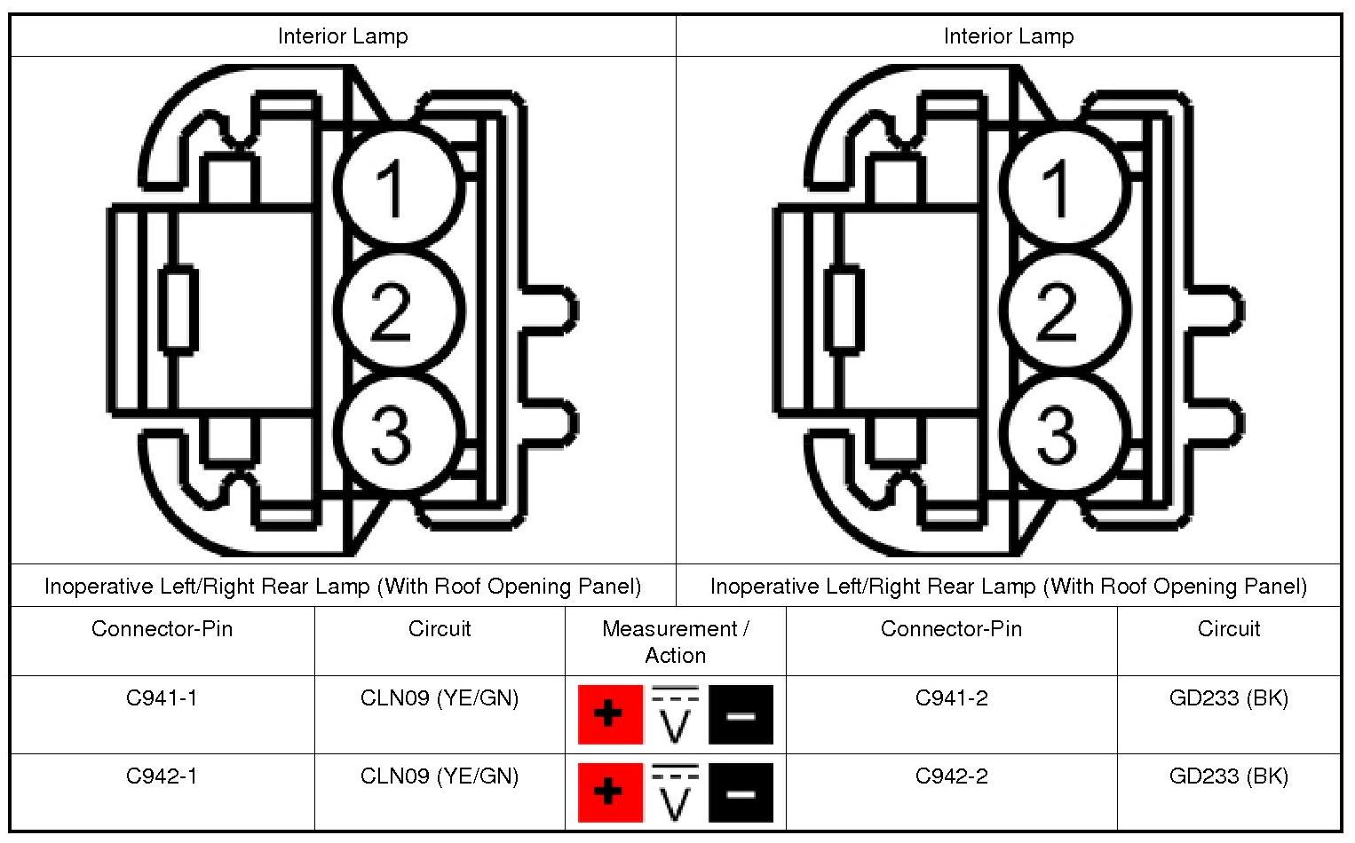 2. For a rear interior lamp (with roof opening panel), measure: