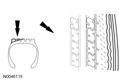 Tread wear indicators are molded into the bottom of the tread grooves. Install a new tire when the indicator bands become less than 0.063 mm (0.0025 in).