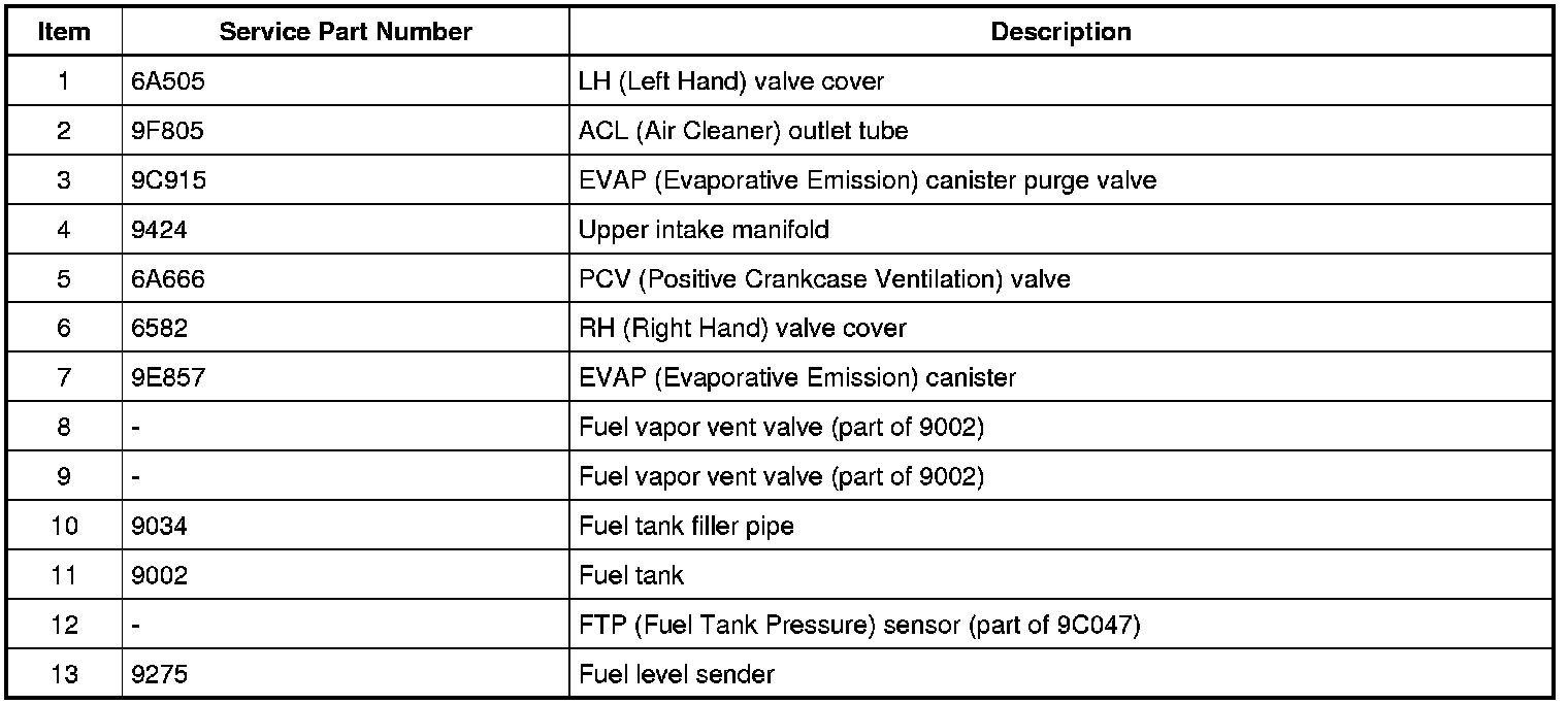 - Fuel vapor tube assembly (includes the FTP (Fuel Tank Pressure) sensor)