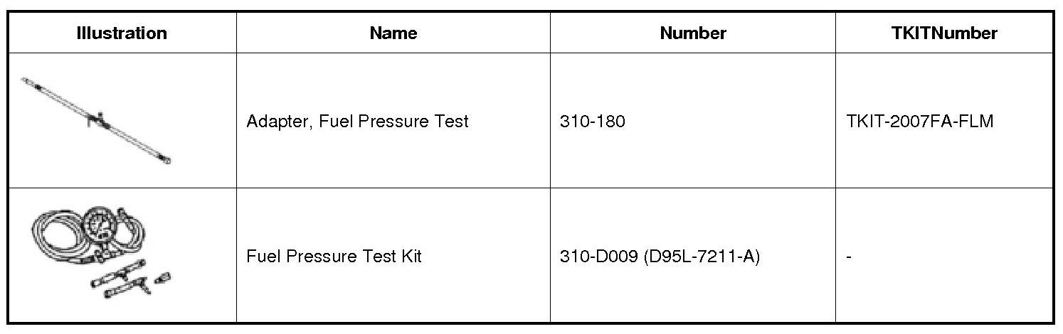 4. Install the Fuel Pressure Test Adapter and the Fuel Pressure Test Kit between the fuel tube and the fuel jumper tube.
