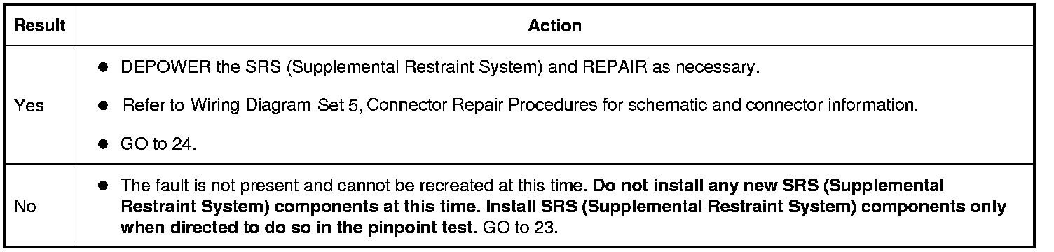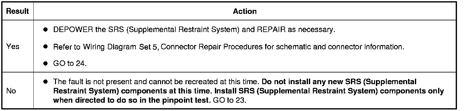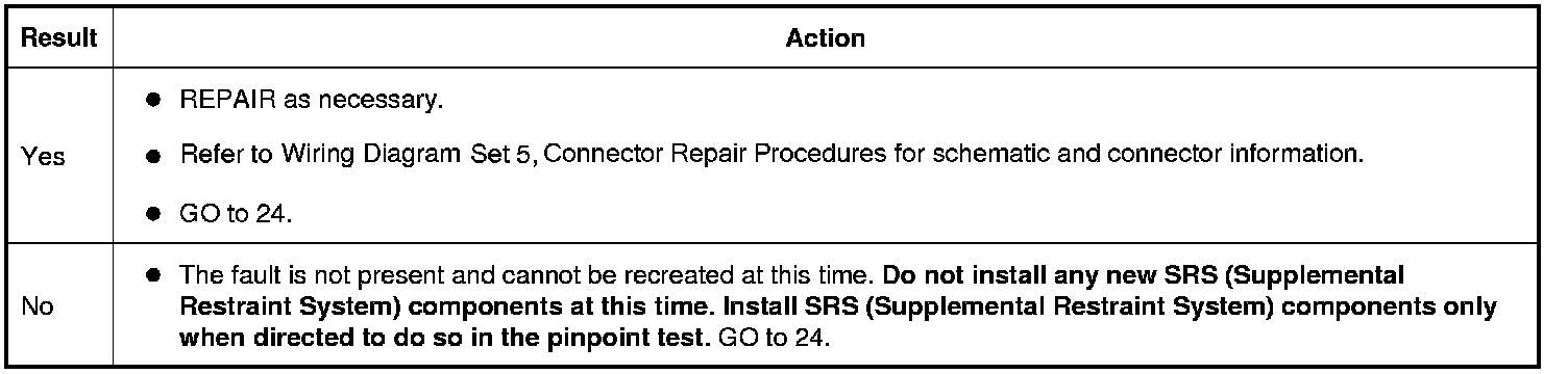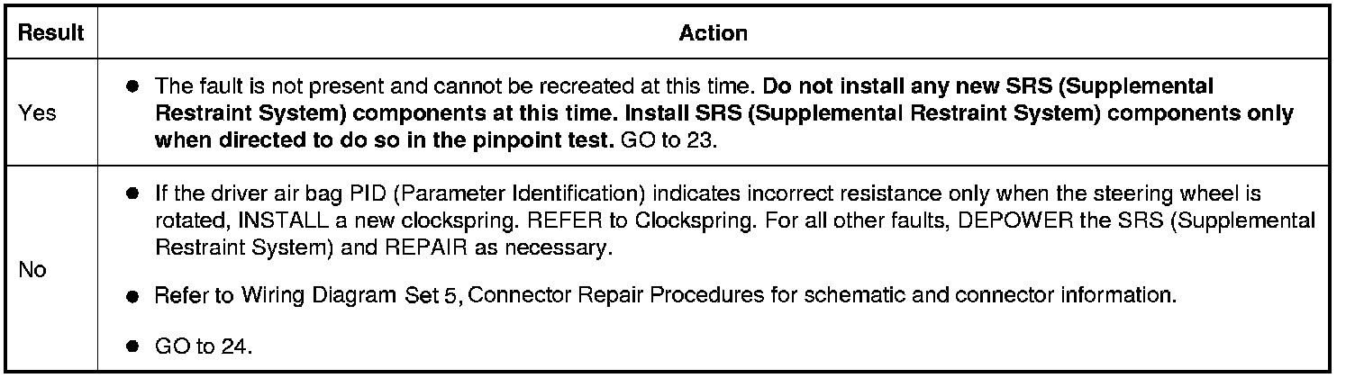 NOTE: Only disconnect or reconnect SRS (Supplemental Restraint System) components when instructed to do so within a pinpoint test step. Failure to follow this instruction may result in incorrect diagnosis of the SRS (Supplemental Restraint System).