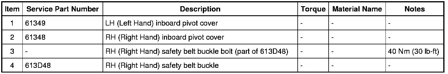 - Front safety belt buckle support assemblies (slide bar) (if equipped)