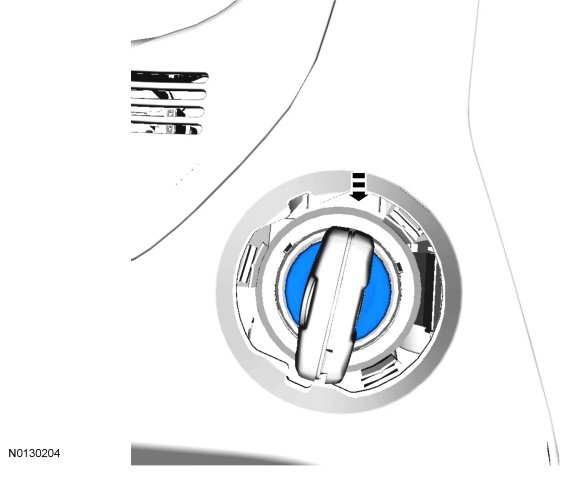 1. Using a 90 pick tool, press the ignition lock cylinder release pin on the topside of the ignition lock cylinder housing, while pulling the ignition key outward.