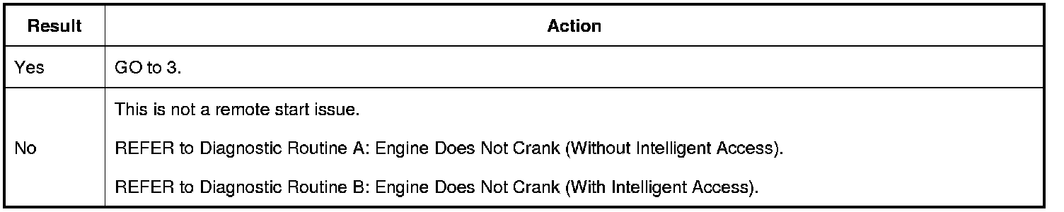 4. Press the remote start button on the IKT (Integrated Keyhead Transmitter) or IA (Intelligent Access) key and note the PID (Parameter Identification) status.