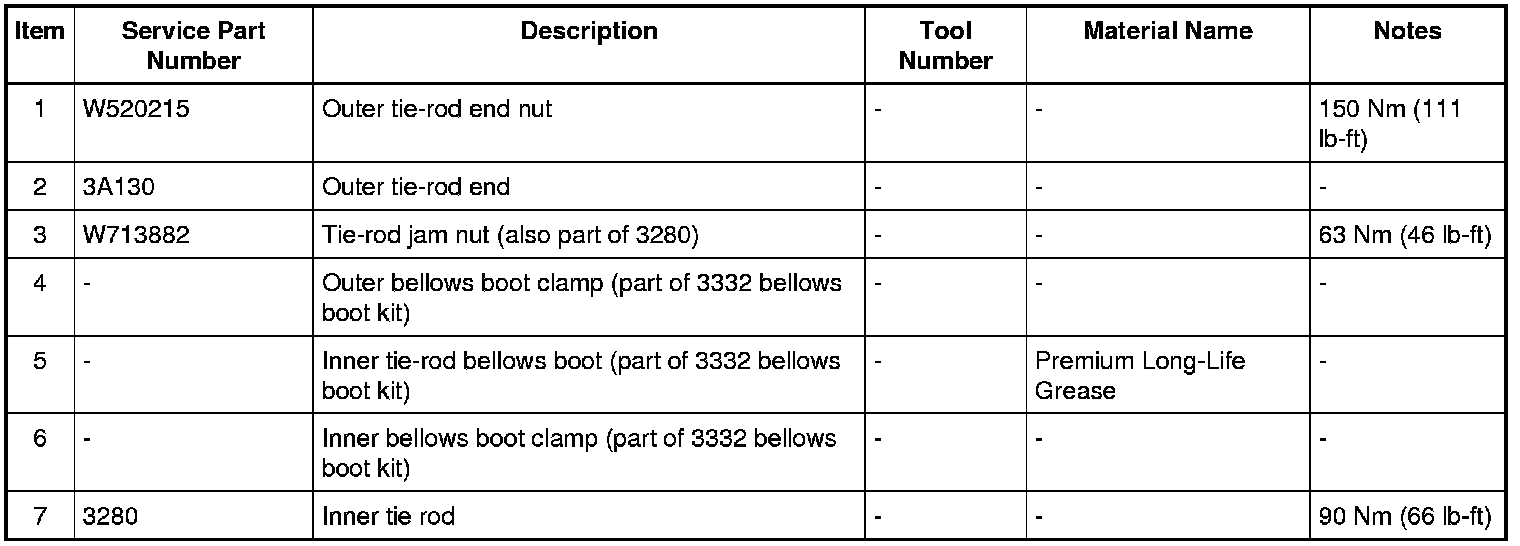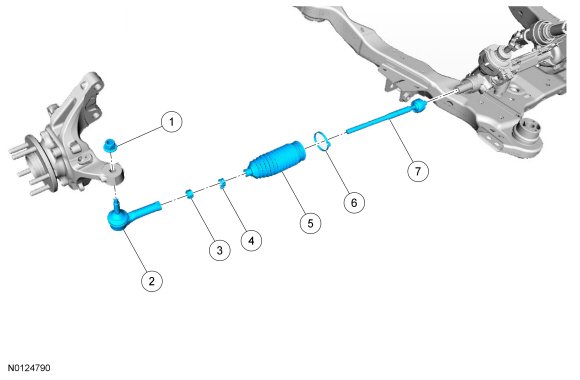 NOTICE: When servicing inner tie rods, a new bellows boot and clamps must be installed. The boots and clamps are designed to provide an airtight seal and protect the internal components of the steering gear. If the seal is not airtight, the vacuum generated during turning will draw water and contamination into the gear, causing failure of the steering gear components. Zip ties must not be used as they do not provide an airtight seal.