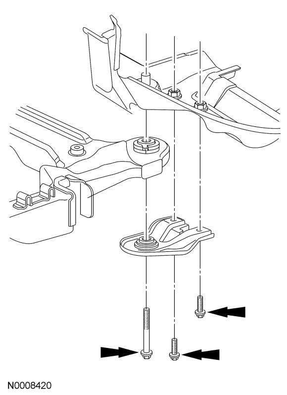 10. Remove and discard the 2 subframe forward bolts.
