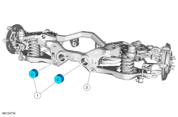 1. NOTE: There are 2 RDU (Rear Drive Unit) rear bushings in the rear subframe. This procedure shows how to install one bushing. The procedure for the remaining RDU (Rear Drive Unit) bushing is identical.