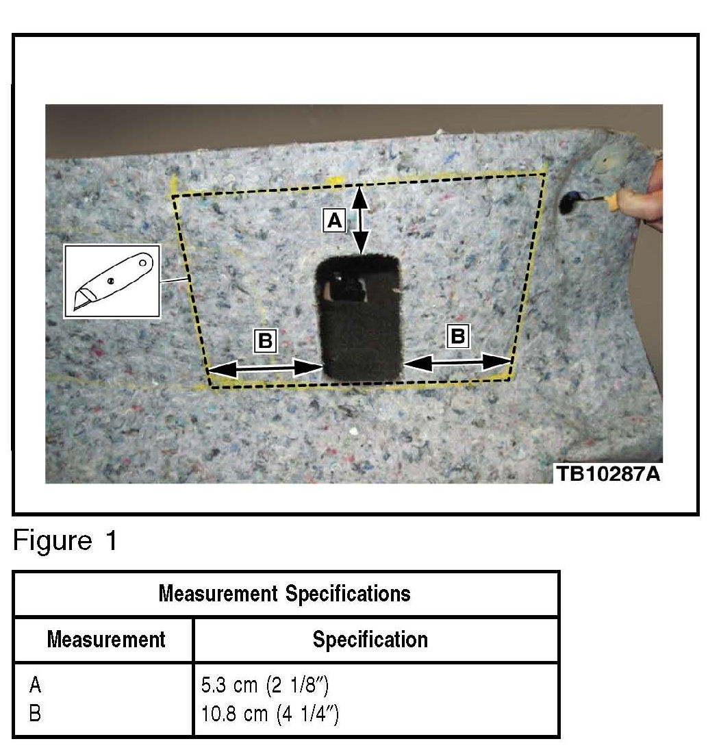 7. Mark a rectangle on the carpet padding to be cut. (Figure 1)