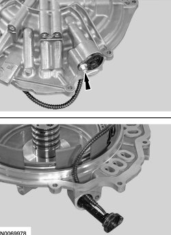 124. NOTE: Install the overdrive clutch piston return spring so that the holes are facing upward.