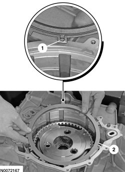 1. Make sure the tab on the bottom of the pressure plate fits in the gap of the low OWC (One-Way Clutch) snap ring.