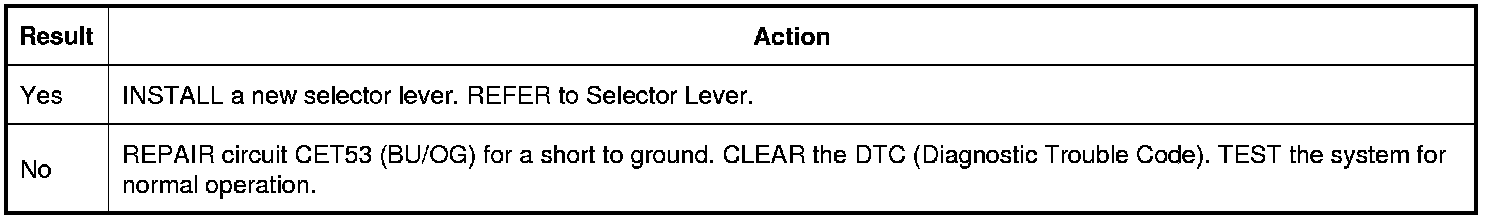 3. Measure the resistance of circuit CET53 (BU/OG) from the selector lever C2008-3 to ground.
