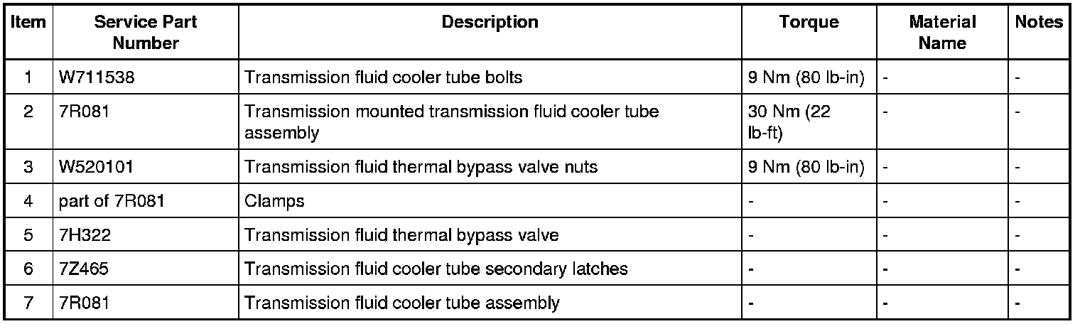 5. Inspect the transmission mounted transmission fluid cooler tube backing rings and seals for damage and install new backing rings or seals if necessary. Lubricate the transmission mounted transmission fluid cooler tube seals with clean Motorcraft(R) MERCON(R) LV Automatic Transmission Fluid and install the backing rings and seals on the transmission mounted transmission fluid cooler tubes.