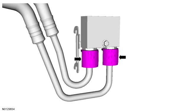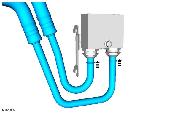 1. Install the transmission return and inlet cooler tubes into the transmission fluid thermal bypass valve.