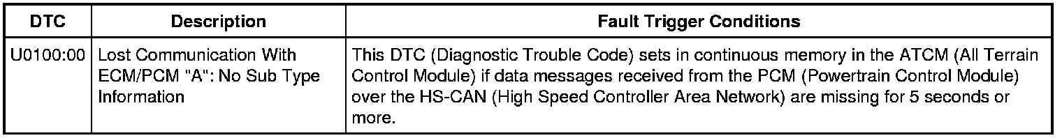 4. RETRIEVE DTCs (Diagnostic Trouble Codes) FROM THE ATCM (All Terrain Control Module) SELF-TEST