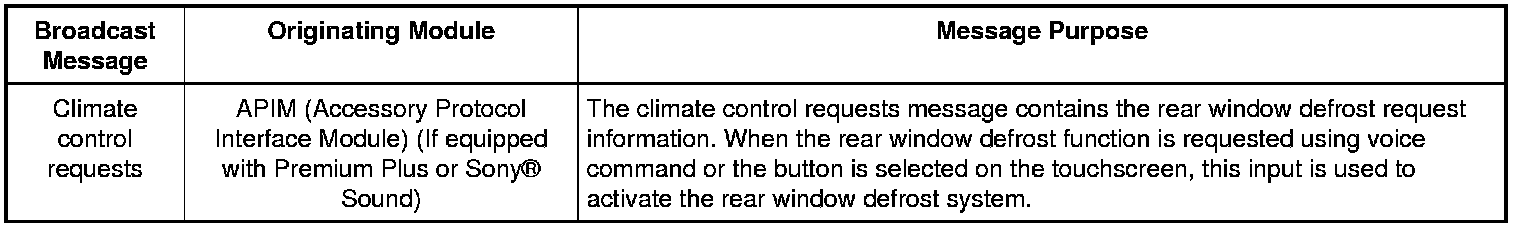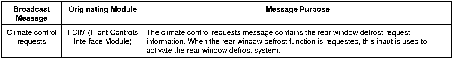Network Message Chart - Rear Window Defrost