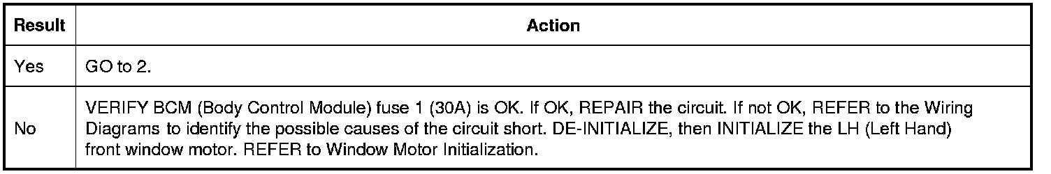 2. CHECK THE LH (Left Hand) FRONT WINDOW MOTOR DELAYED ACCESSORY FEED