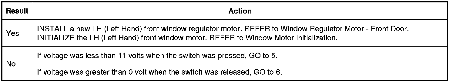 2. While pressing and releasing the LH (Left Hand) front window control switch, measure: