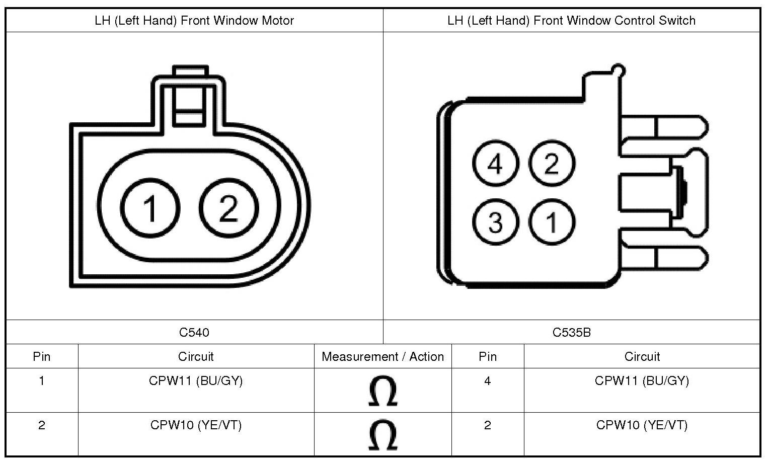 2. Disconnect: LH (Left Hand) Front Window Control Switch C535B.