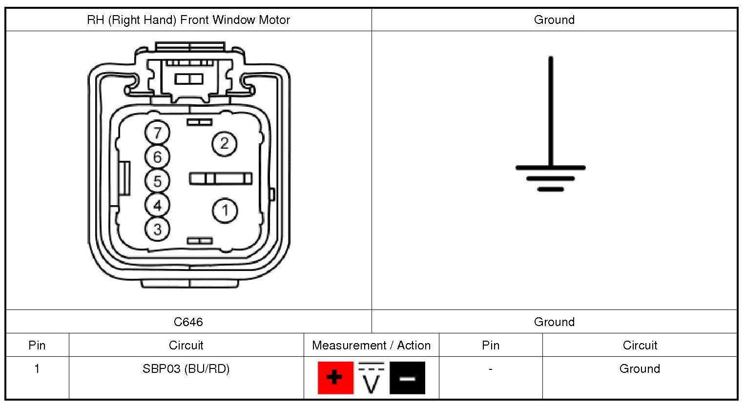 4. CHECK THE RH (Right Hand) FRONT WINDOW MOTOR GROUND