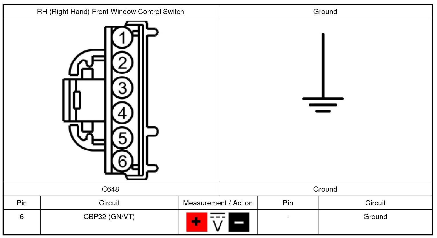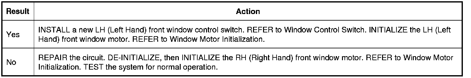 2. While pressing and releasing the LH (Left Hand) front window control switch, measure: