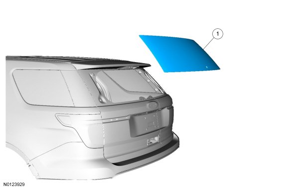 NOTICE: Before positioning the rear quarter glass, open vehicle windows to prevent the air pressure of closing doors from affecting the urethane adhesive bond.