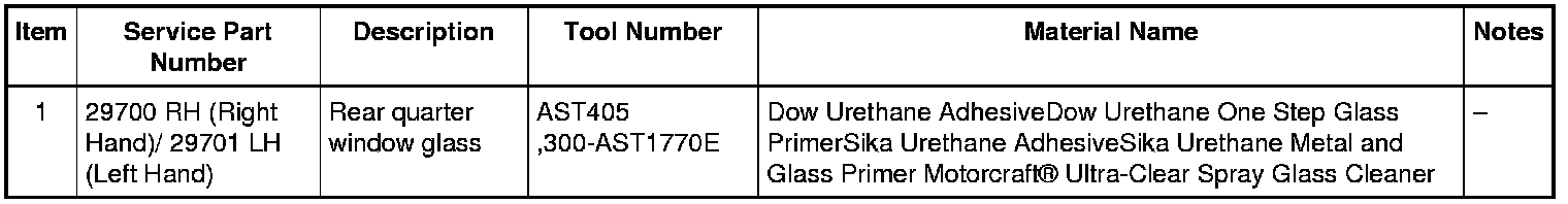 NOTICE: Before positioning the rear quarter glass, open vehicle windows to prevent the air pressure of closing doors from affecting the urethane adhesive bond.