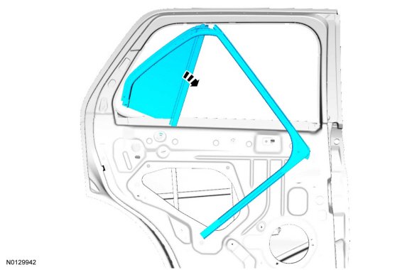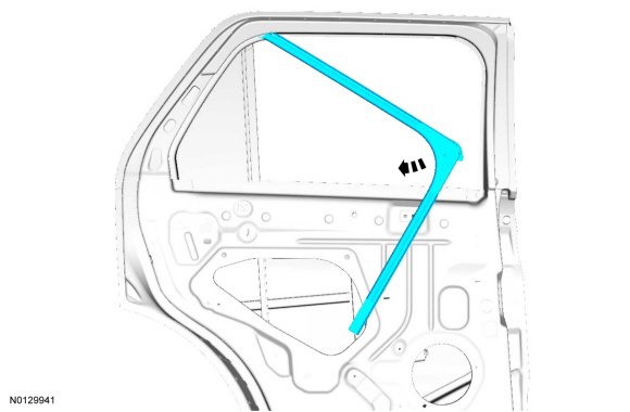 1. NOTE: The door glass run and bracket are part of the rear window fixed glass assembly and cannot be serviced separately.