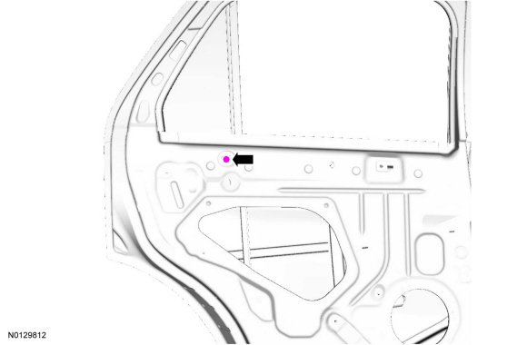 Remove the rear door panel. REFER to Door Trim Panel - Rear Service and Repair.
