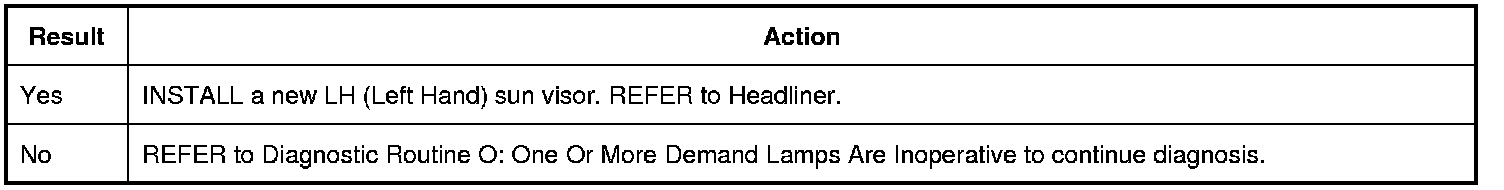 1. Verify the operation of the LH (Left Hand) vanity mirror lamp. REFER to Demand Lamps Interior Lighting.