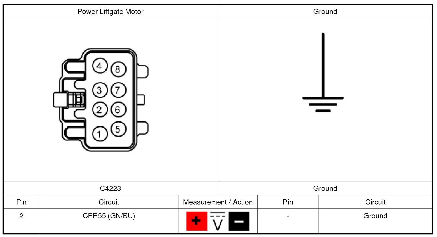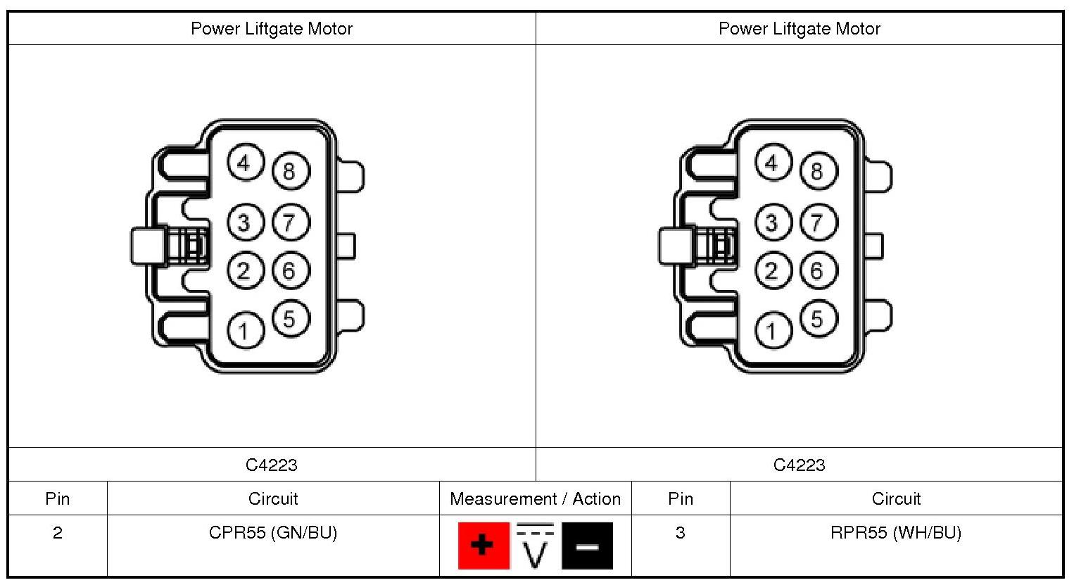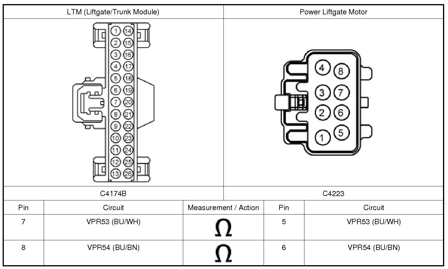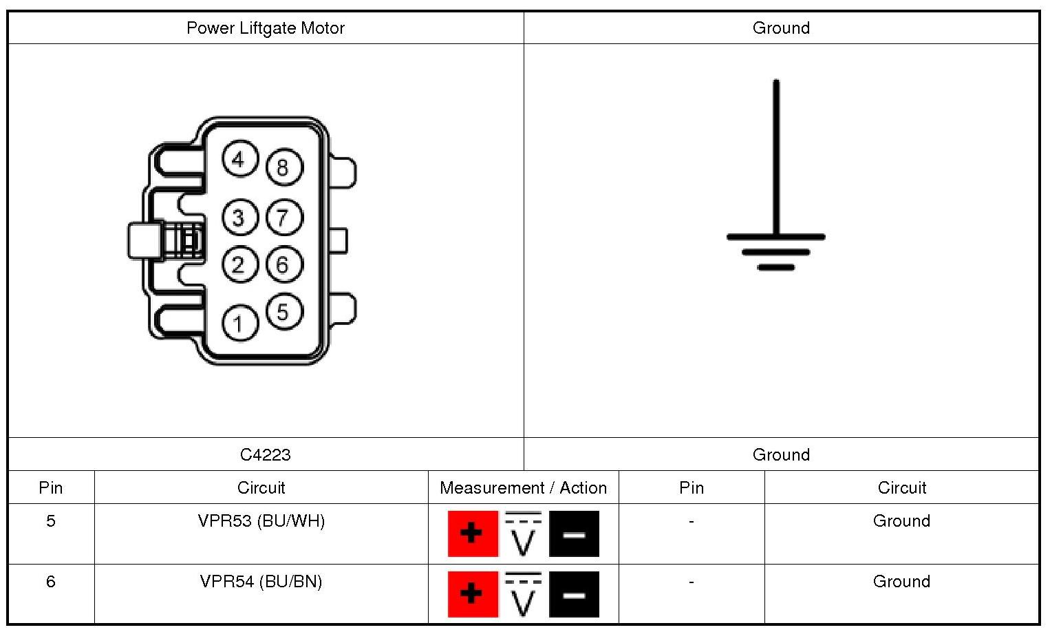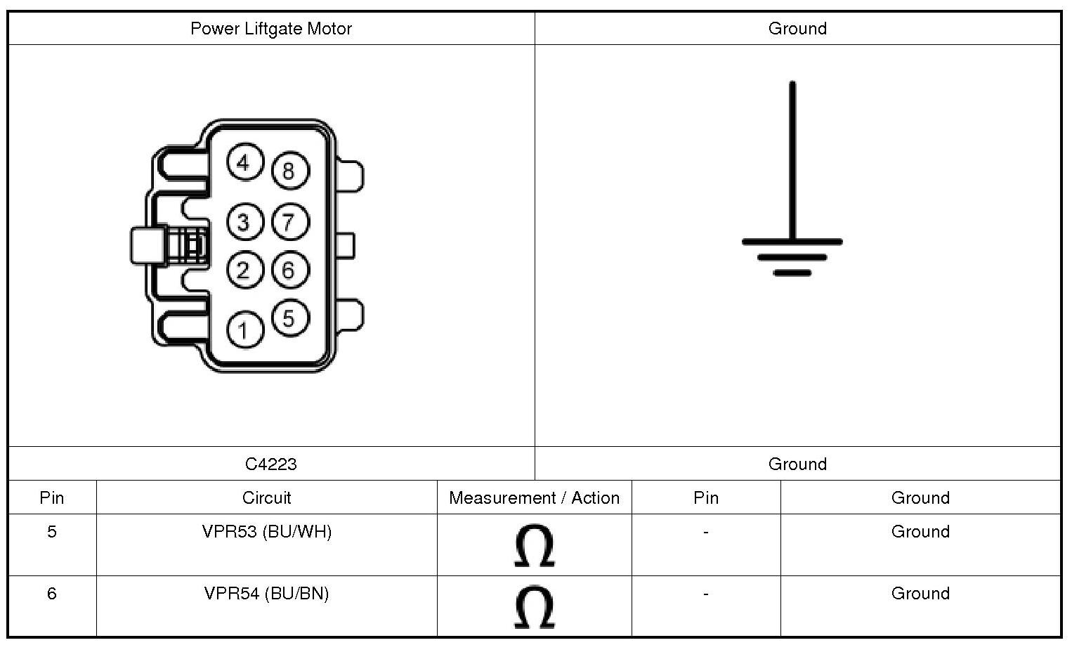 Refer to Wiring Diagram Set 109, Power Liftgate for schematic and connector information. Diagrams By Number