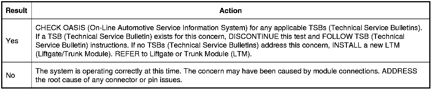9. CHECK FOR CORRECT LTM (Liftgate/Trunk Module) OPERATION
