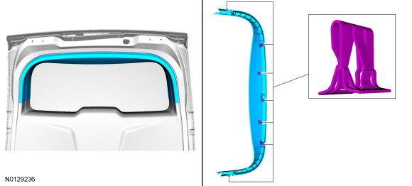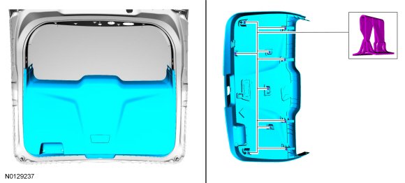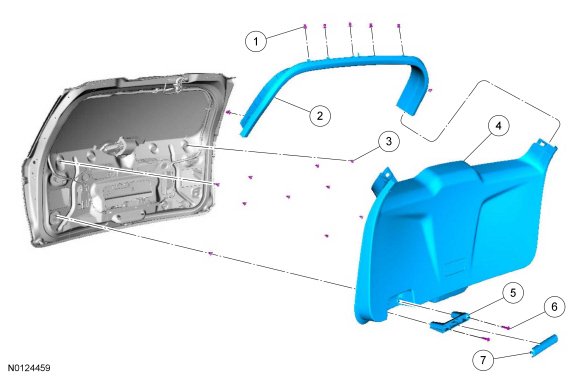 4. Disconnect the 10 liftgate trim panel clips and remove the liftgate trim panel.