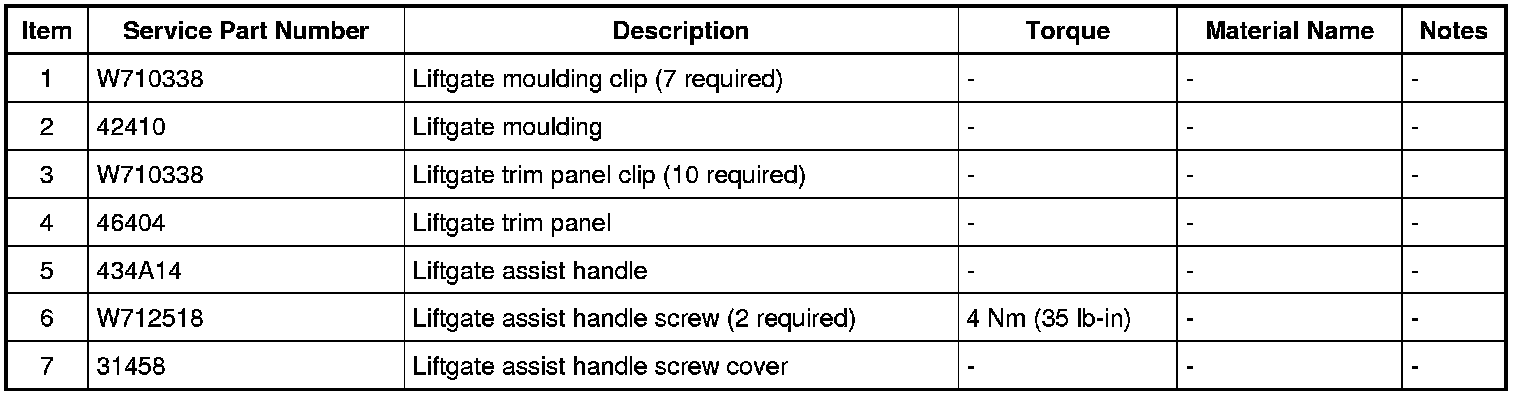 1. Disconnect the 7 liftgate moulding clips and remove the liftgate moulding.