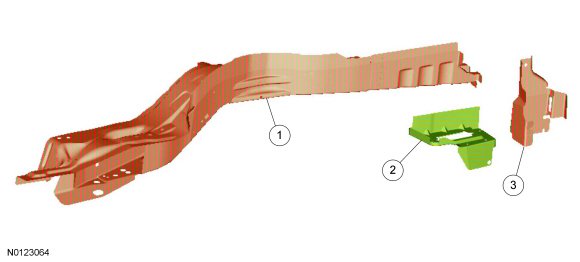 NOTICE: Frame members are made of combinations of HSLA (High-Strength Low Alloy) and UHSS (Ultra High Strength Steel). Because of this, sectioning is not recognized by Ford Motor Company. Frame members must be replaced at the factory seams.