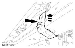 Position the RH (Right Hand) and LH (Left Hand) engine splash shields and install the 4 lower pin-type retainers.