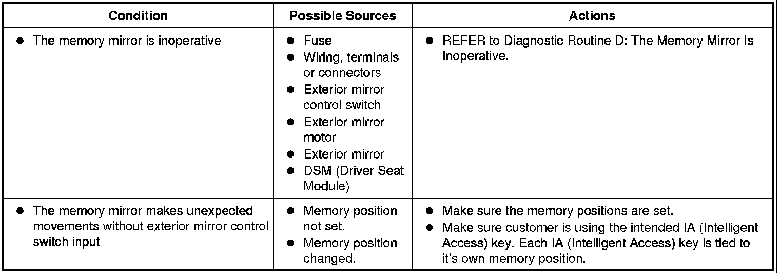 Symptom Chart: Rear View Mirrors - Exterior, Memory