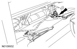 2. NOTICE: Do not lift the load floor flapper panel too far or damage to the wire harness retainers will occur.