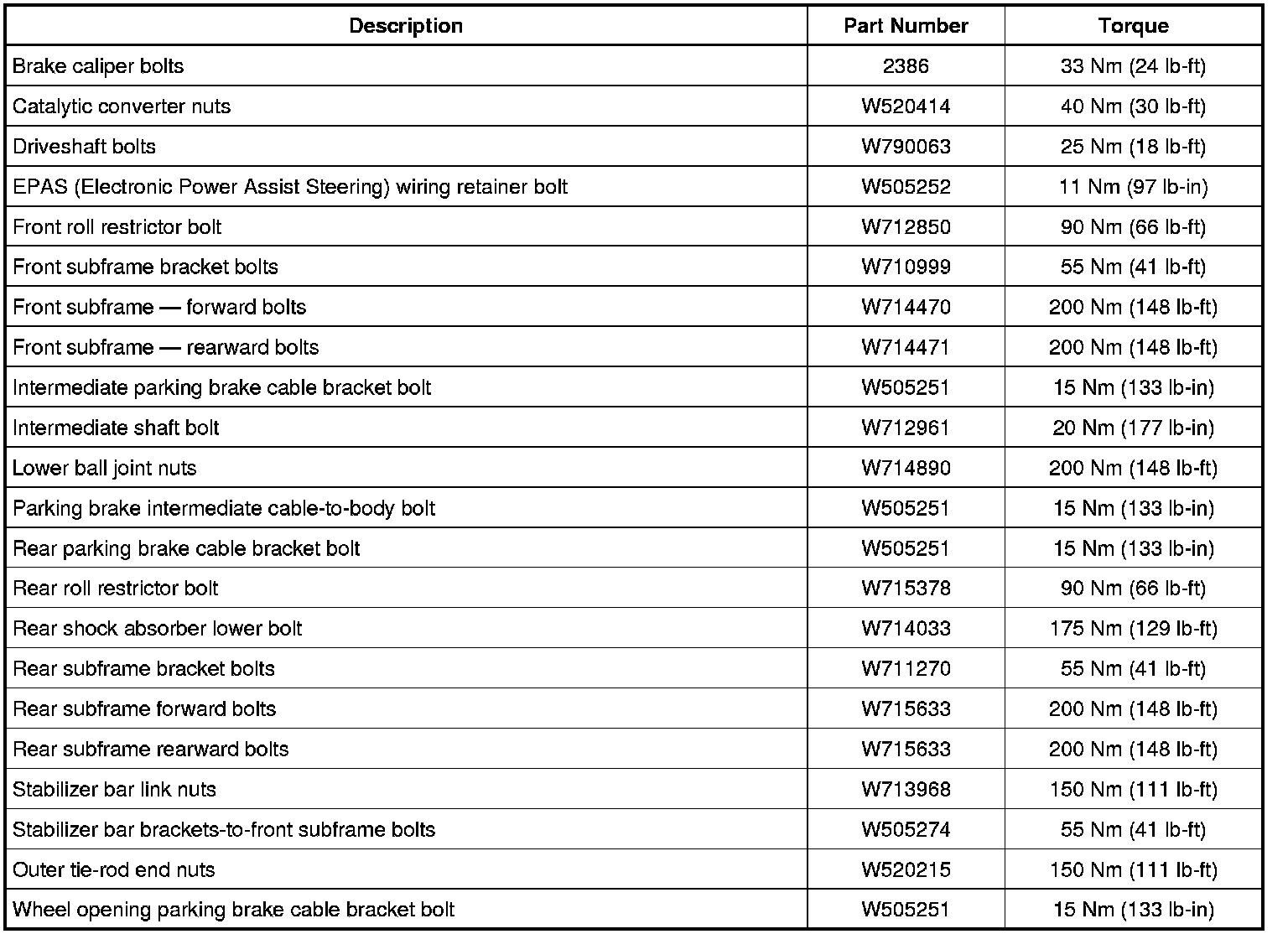 Torque Specifications