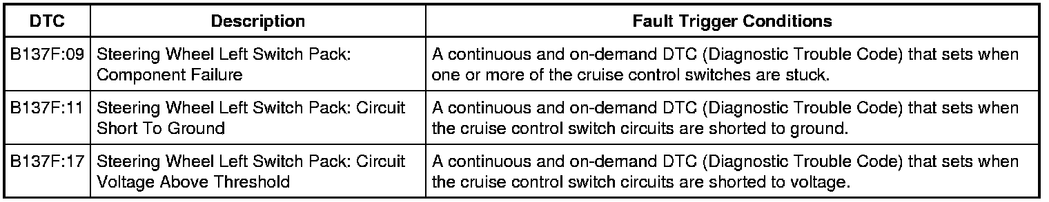 REFER to Steering Wheel Switch Function Cruise Control - Non Adaptive.