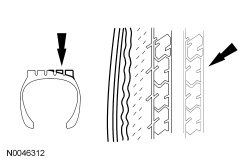 Tread wear indicators are molded into the bottom of the tread grooves. Install a new tire when the indicator bands become less than 0.063 mm (0.0025 in).