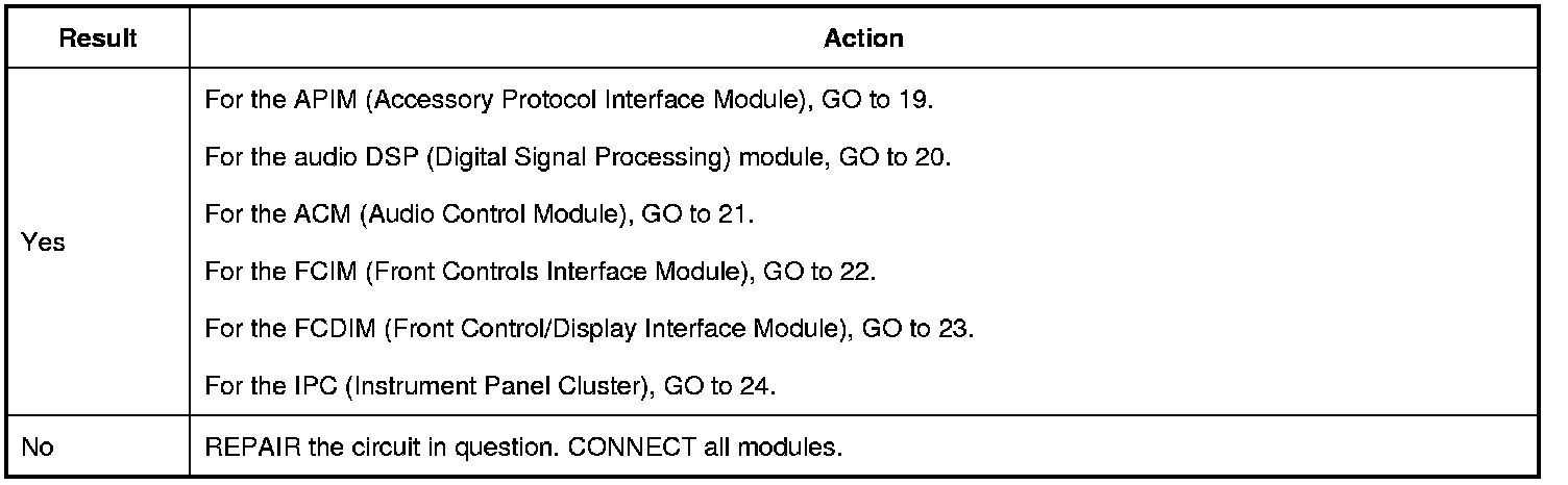 17. CHECK FOR RESTORED COMMUNICATION WITH THE APIM (Accessory Protocol Interface Module) AND ACM (Audio Control Module) DISABLED