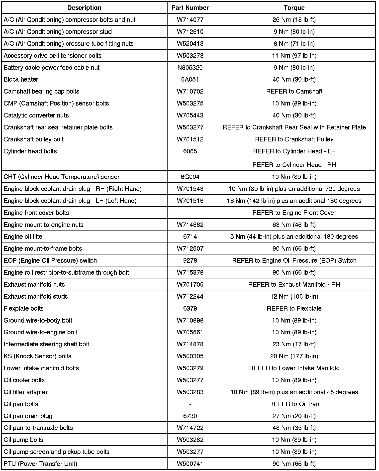 Torque Specifications